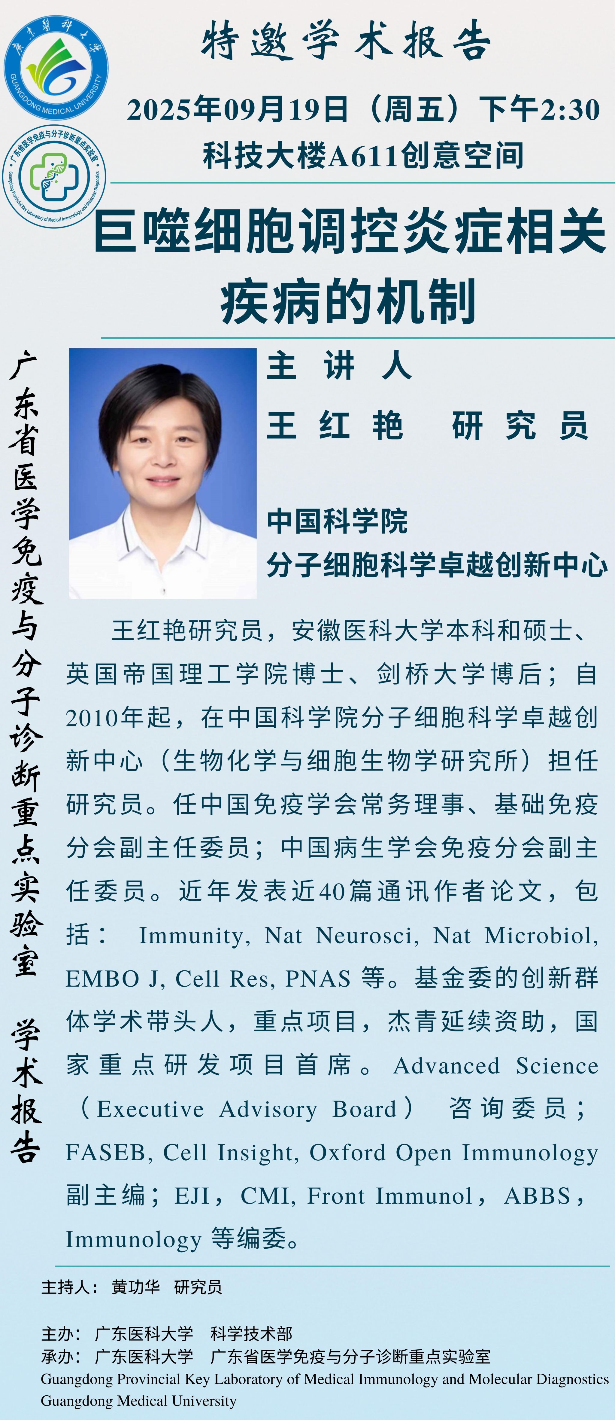 特邀学术报告第37讲|中国科学院分子细胞科学卓越创新中心:王红艳研究员